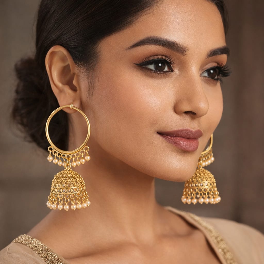 Whether you’re attending a festive celebration or simply want to elevate your everyday ethnic look, these elegant jhumka hoop earrings are a must-have accessory for every jewellery lover.