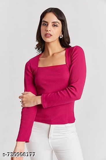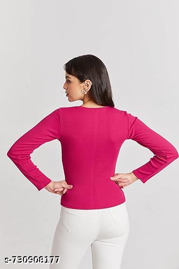 Upgrade your wardrobe with this trendy Women Solid Pink Square Neck Full Sleeve Top.